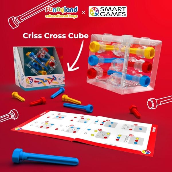 Criss Cross Cube là trò chơi giải đố phù hợp với mọi lứa tuồi. Mục tiêu của trò chơi này là lắp hoàn toàn tất cả 13 con vít vào khối lập phương trong suốt mà chúng không cản trở nhau