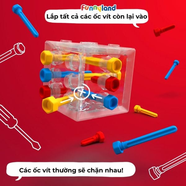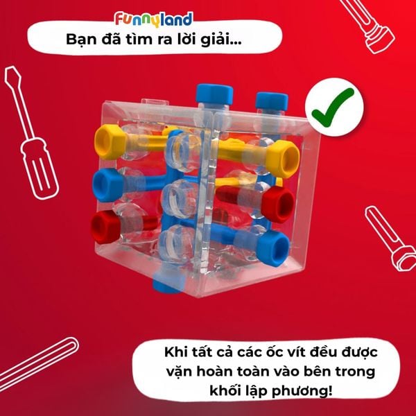 - Bạn đã giải quyết được thử thách khi tất cả các con vít được đặt hoàn toàn bên trong khối lập phương.