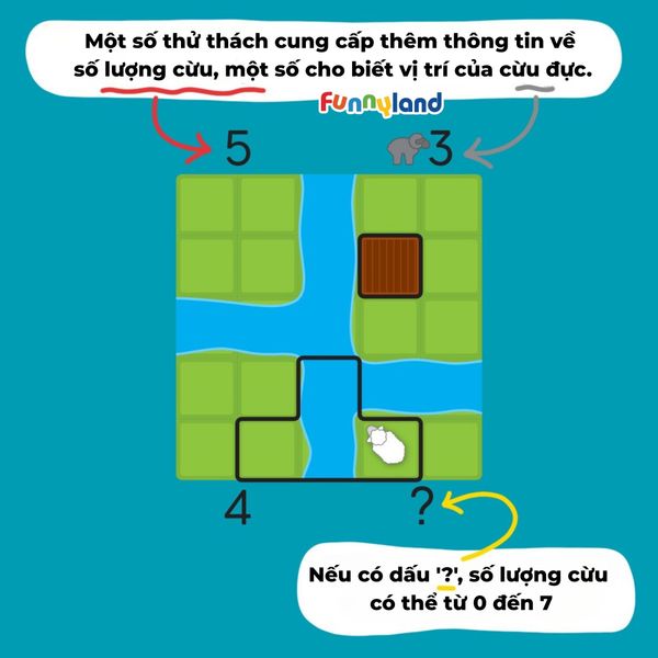 - Một số thử thách sẽ cung cấp thêm thông tin về số lượng cừu cần có trên một hòn đảo cụ thể hoặc chỉ ra hòn đảo có chú cừu đực.