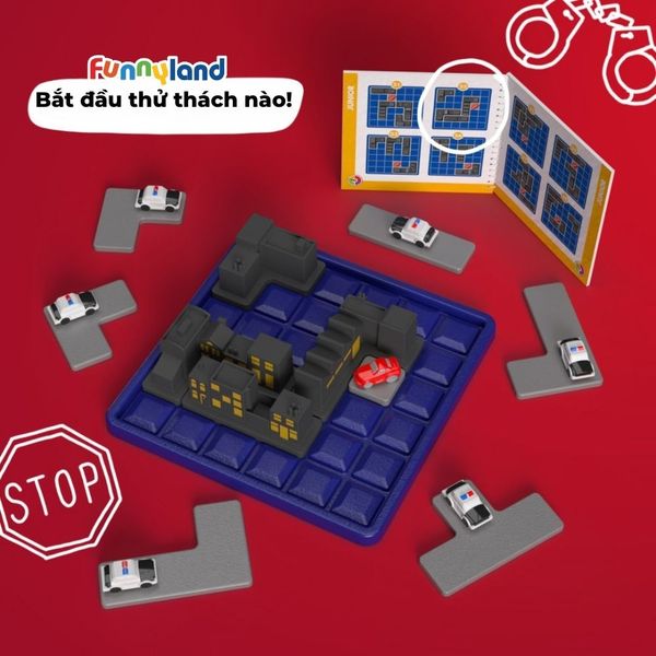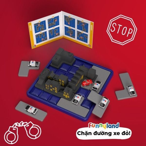 - Đặt các mảnh ghép xe cảnh sát còn lại lên bảng trò chơi sao cho chặn hoàn toàn đường đi của chiếc xe màu đỏ.