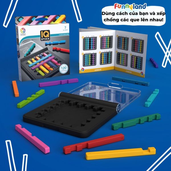 IQ Stixx là dòng đồ chơi thông minh với 120 thử thách mức độ với từ dễ đến khó. Bên trong sản phẩm có 10 mảnh ghép, mỗi mảnh ghép tạo ra bằng hình khối. Khi đặt các mảnh ghép lên trên bảng trò chơi, các hình khối phải nằm hoàn toàn bên trong