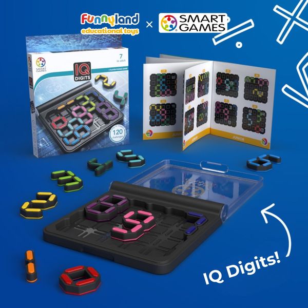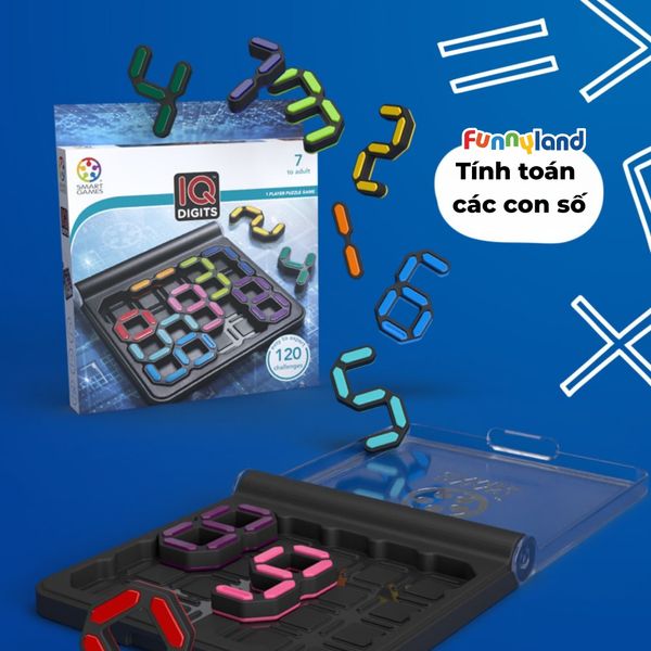 IQ Digits là dòng đồ chơi thông minh với 120 thử thách mức độ với từ dễ đến khó. Bên trong sản phẩm có 10 mảnh ghép, mỗi mảnh ghép tạo ra bằng hình khối. Khi đặt các mảnh ghép lên trên bảng trò chơi, các hình khối phải nằm hoàn toàn bên trong